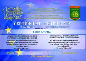 - Курс «Критичне мислення» (Міжнародний інститут психології “International Institute Of Psychology”, 2023).