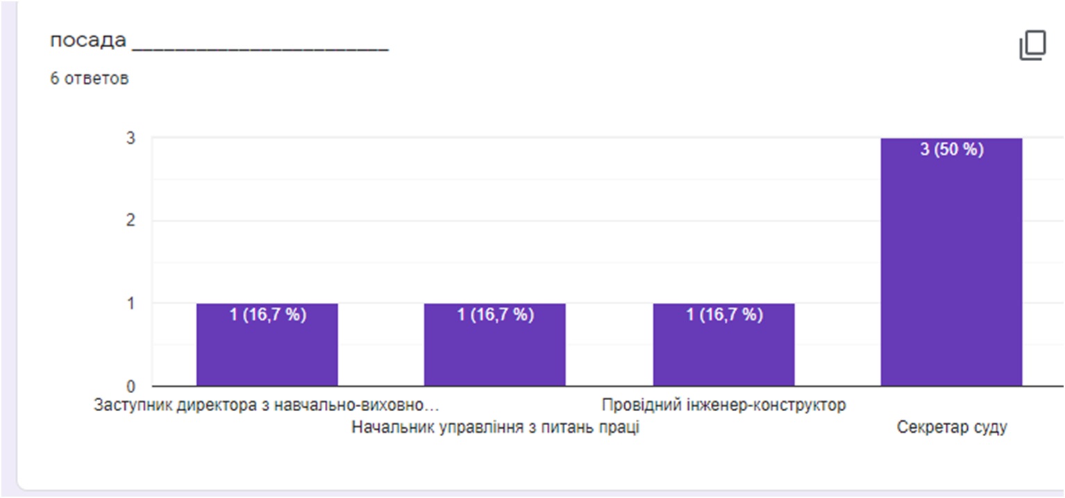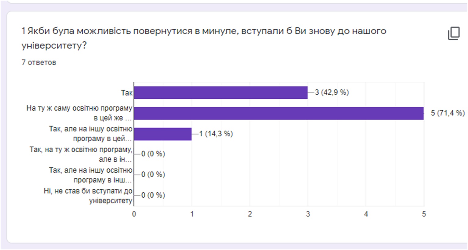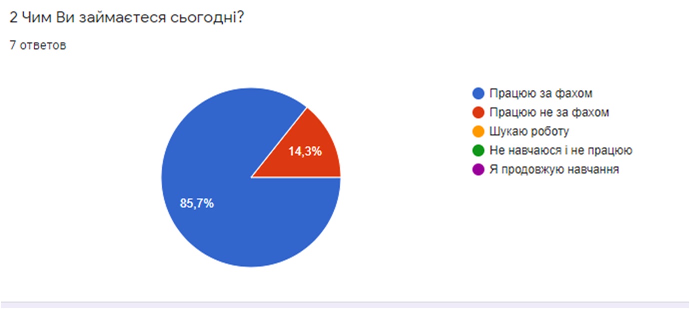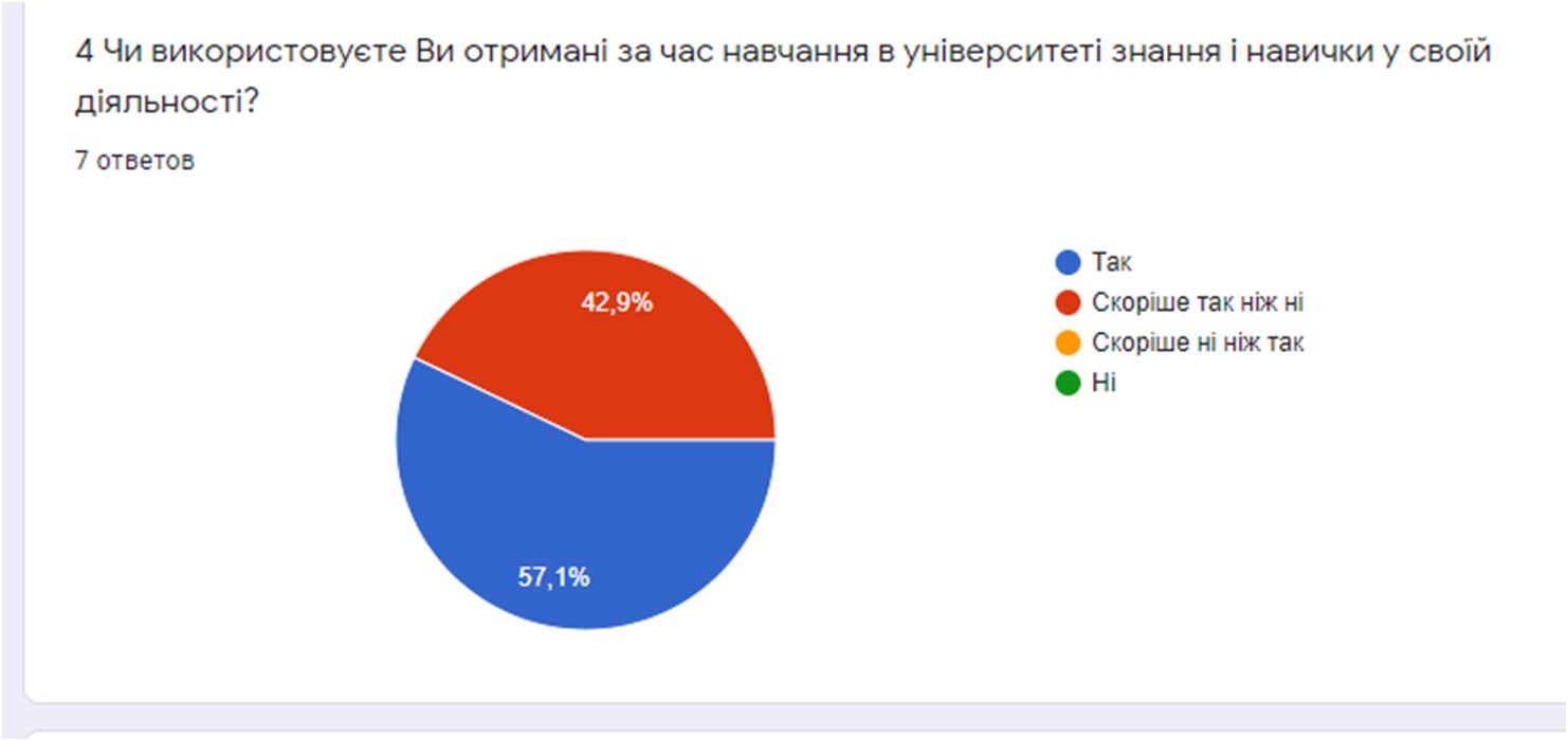 Суцільне дослідження проводилося за участю 9 випускників різних років навчання спеціальності 281 «Публічне управління та адміністрування», (магістерський рівень) в березні 2021 року.
