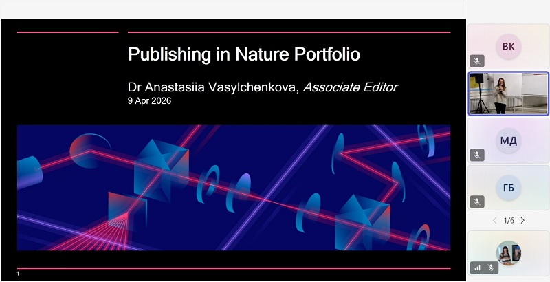Матеріал лекції був присвячений науковим публікаціям світового рівня. Дослідниця пояснила, як функціонує редакційна система журналів Nature, за якими критеріями відбираються статті та що відрізняє дослідження рівня Q1. Вона також поділилася практичними порадами для науковців: як правильно структурувати рукопис, презентувати результати та уникати типових помилок, що можуть завадити публікації.