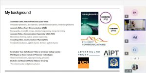 НТУ «ХПІ» організував унікальну відкриту лекцію за участю провідних вчених із Великої Британії. Аспіранти та науково-педагогічні працівники кафедри відвідали захід, спікером якого стала редакторка відомого міжнародного наукового журналу Nature Photonics Анастасія Васильченкова. Зустріч проходила в офлайн та онлайн-форматах 9 квітня 2026 року.