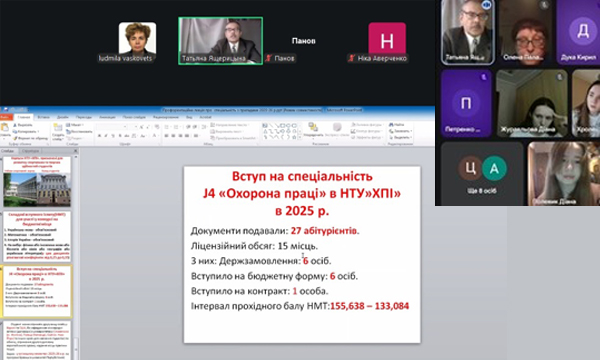 Продовжується дистанційна профорієнтаційна робота викладачів кафедри у поточному навчальному році стосовно вступу на спеціальність J4 «Охорона праці» освітньої програми «Охорона праці». У грудні 2025 р. дистанційні профорієнтаційні заходи були проведені з студентами Полтавського фахового коледжу транспортного будівництва; Полтавського Вищого Міжрегіонального професійного училища; Харківського машинобудівного фахового коледжу; Харківського комп’ютерно- технологічного фахового коледжу НТУ «ХПІ»; учнями Путивльського ліцею №2 ім. Г.Я. Базими(Сумська обл.); Глухівської ЗОШ №1 (Сумська обл.); Конотопського ліцею №9 (Сумська обл.); Харківського ліцею №16; Бірківського ліцею (с. Бірки, Харківська обл.).