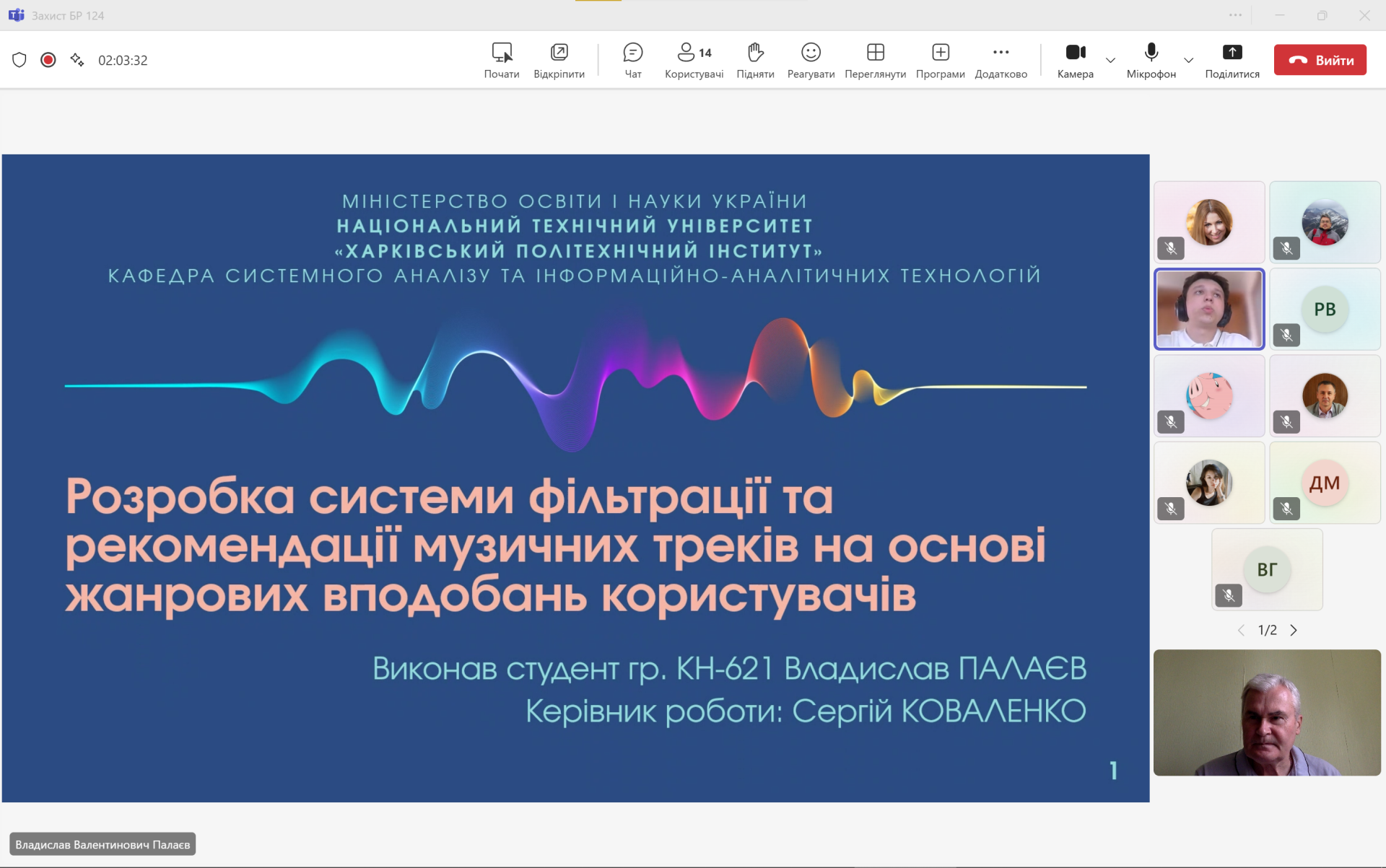 - ПАЛАЄВ Владислав Валентинович – Розробка системи фільтрації та рекомендації музичних треків на основі жанрових вподобань користувачів