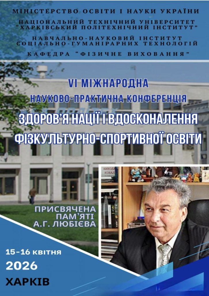 Національним технічним університетом “Харківський політехнічний інститут” на базі кафедри Фізичного виховання проведено Міжнародну науково-практичну конференцію “Здоров’я нації та вдосконалення фізкультурно-спортивної освіти”.