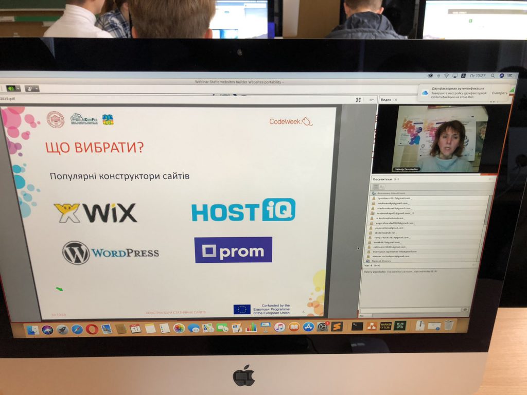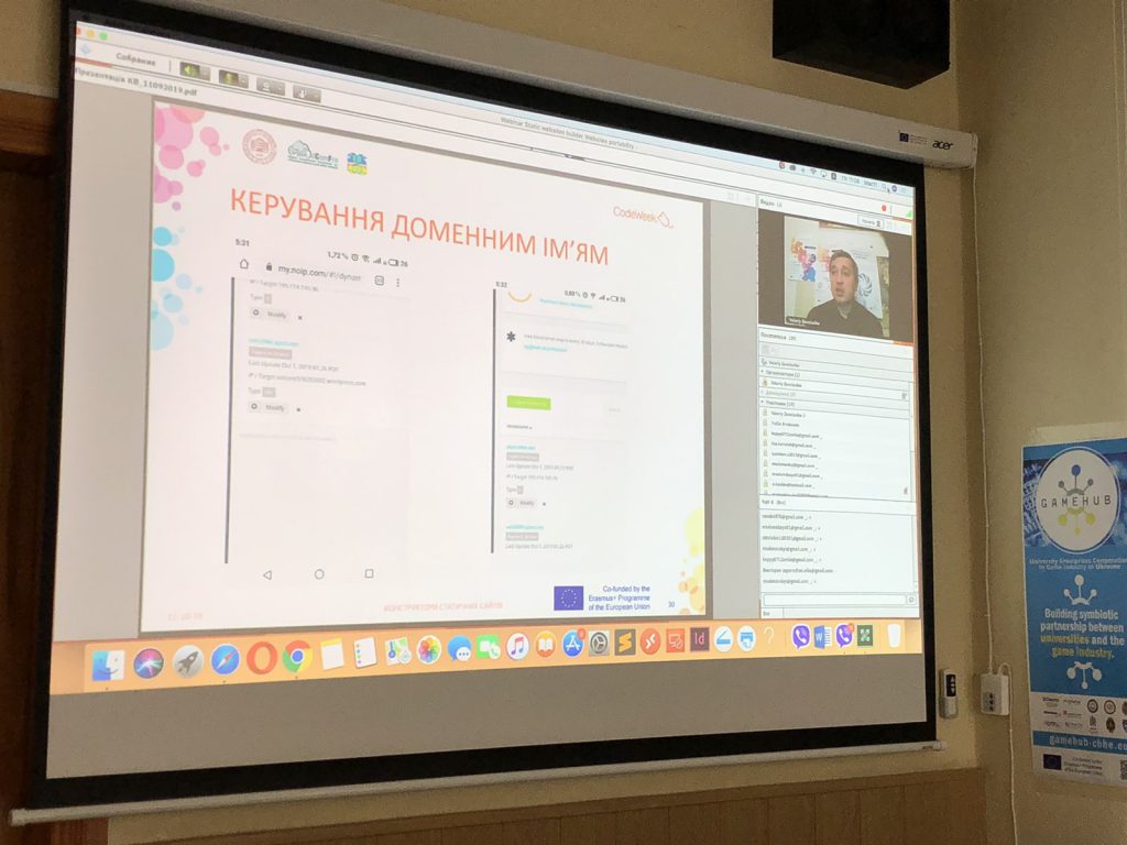 11 жовтня 2019 року відбулася визначна подія як для кафедри Системи Інформації, так і для ХПІ в цілому. В рамках Європейського проекту Челенж CodeWeek і проекту dComFra “dComFra – Digital competence framework for Ukrainian teachers and other citizens / dComFra” (No. 598236-EPP-1-2018-1-LT-EPPKA2-CBHE-SP)” був проведений Вебінар, в якому об’єднаними зусиллями практики і науки було доступно розкрито тему “Як не володіючи знаннями розробника створити свій сайт?”. Вебінар проводили експерт-практик з 20 річним досвідом роботи в WEB технологіях, архітектор програмного забезпечення компанії Zfort Заволодько Валерій і доцент кафедри «Системи інформації» Заволодько Ганна.