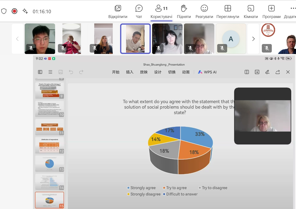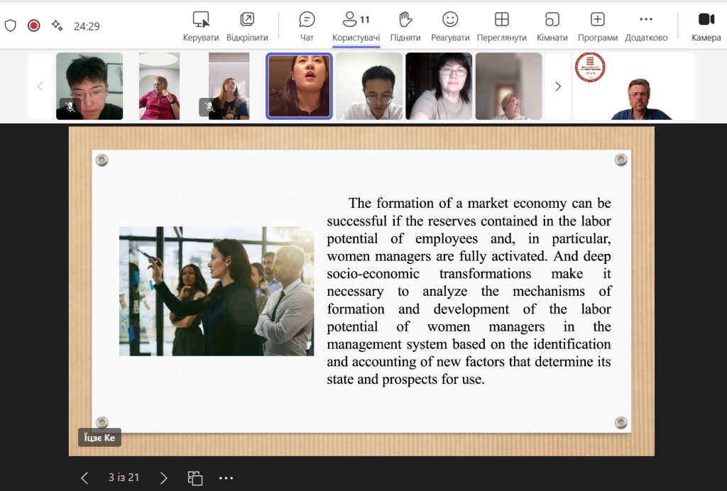 Кафедра соціології і публічного управління має сталі традиції у підготовці громадян інших країн на другому рівні вищої освіти (магістратура). Закінчення 2024/25 навчального року не стало виключенням, адже у червні цього року наші студенти з числа громадян Китаю фіналізують своє навчання на акредитованій НАЗЯВО освітній програмі «Соціологічне забезпечення економічної діяльності» (нова редакція назви цієї освітньої програми «Соціологічне забезпечення діяльності організації»). Ця освітня програма для студентів-іноземців реалізується виключно англійською мовою.