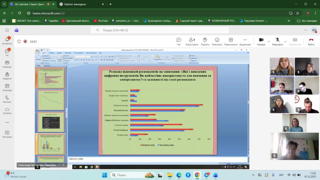 Сьогодні на кафедрі відбувся захист дипломних робіт магістрів спеціальності “Соціологія”. Студенти продемонстрували високий рівень компетентностей щодо проведення авторських соціологічних досліджень. Результати захисту показали що випускники вміють не тільки розробляти програму та інструментарій соціологічного дослідження, а й застосовувати сучасні методи аналізу, такі як кластерний і факторний. Всі роботи містять результати застосування декількох методів, що підвищує рівень надійності та достовірності результатів. Вітаємо випускників освітньої програми “Соціологічне забезпечення діяльності організацій” з успішним закінченням навчання на рівні магістр.