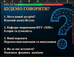 1 березня 2026 року старший викладач кафедри зварювання Павло Ситников провів профорієнтаційну онлайн зустріч зі здобувачами «Златопільский ліцей № 3 «УСПІХ» Златопільскої міської ради Харківської області. В межах заходу обговорено питання перезаключення раніше підписаного договору про співпрацю в галузі освіти, проінформовано викладачів та здобувачів школи щодо переваг навчання на кафедрі зварювання, надано вичерпні відповіді на всі питання щодо вступу та навчання.