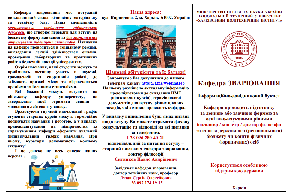 Наукові напрями кафедри зварювання: