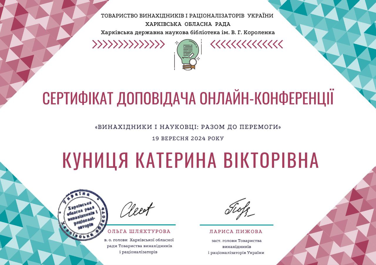 Студентка кафедри отримала відзнаку Вченої Ради НТУ «ХПІ» за активну участь у культурному житті університету