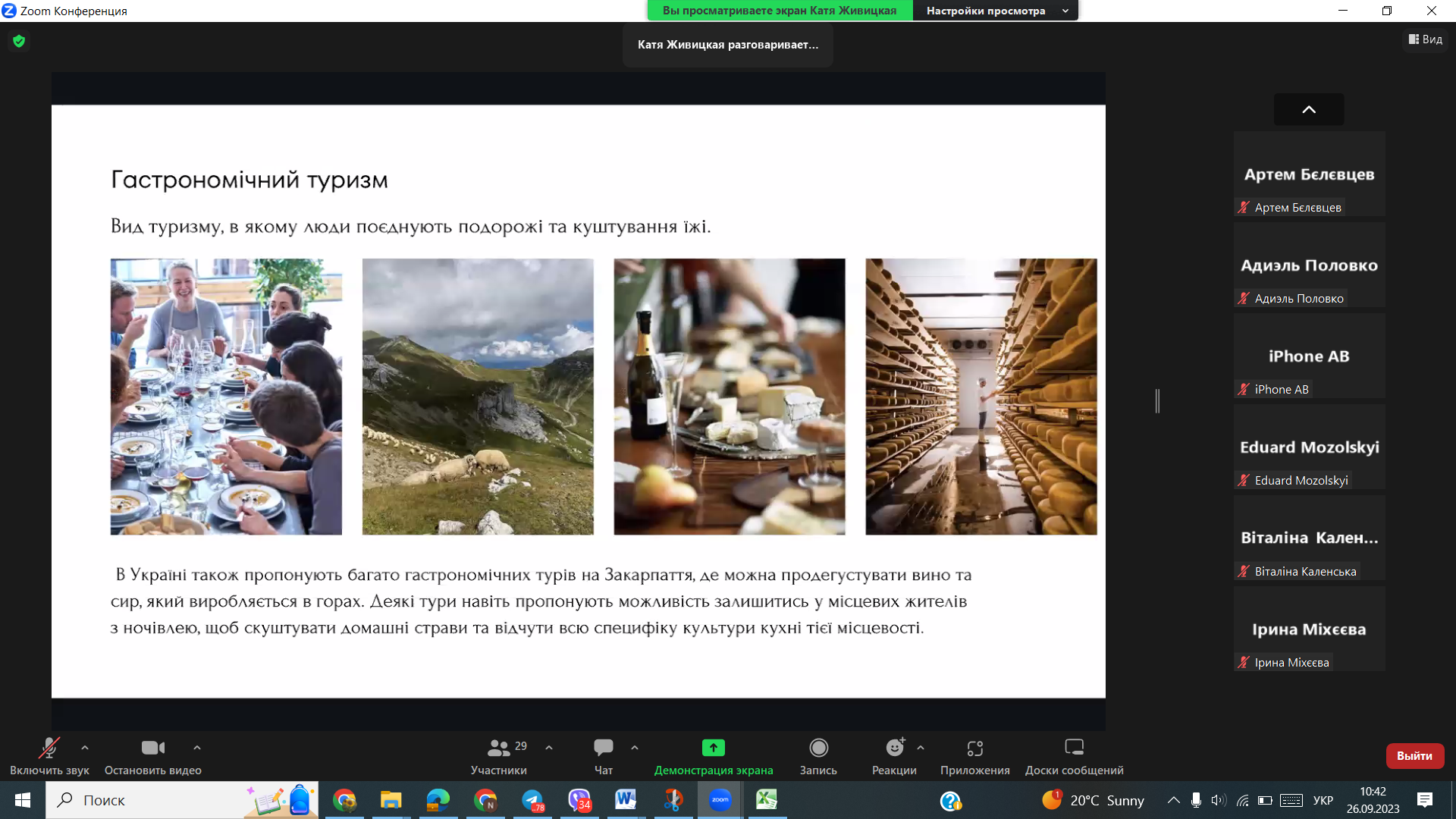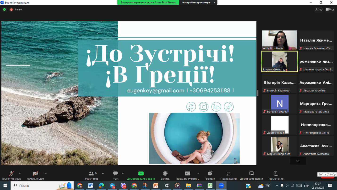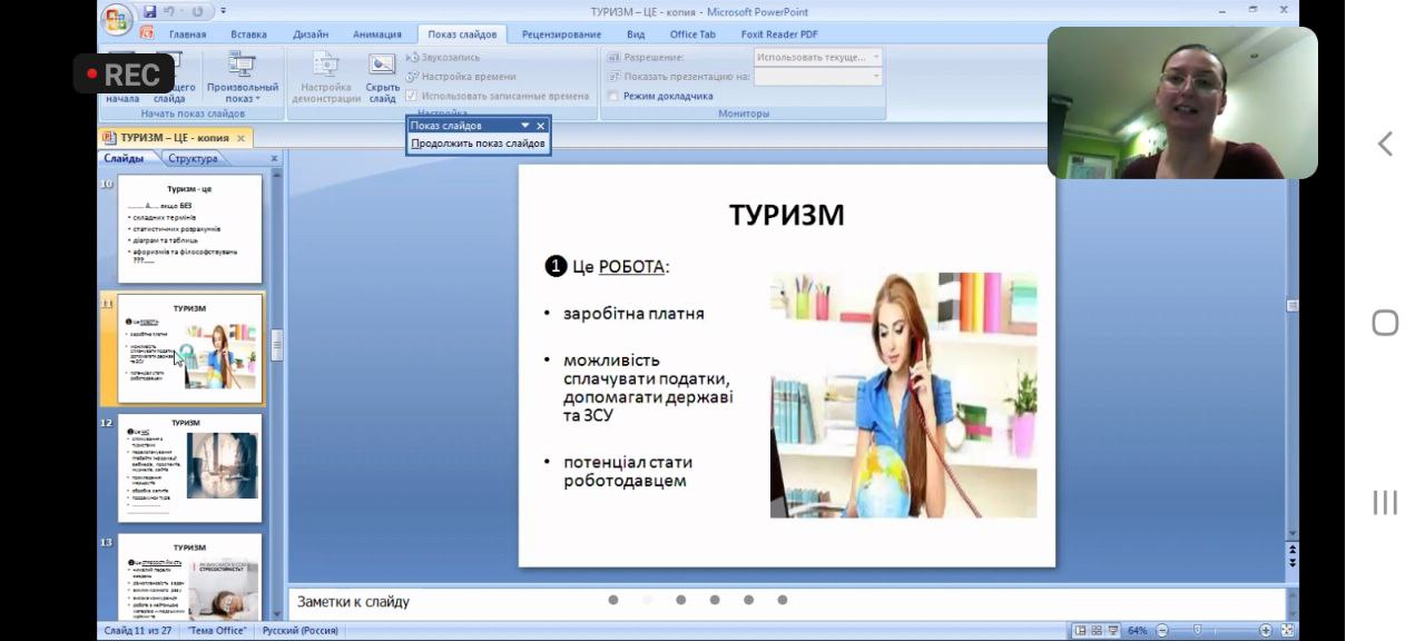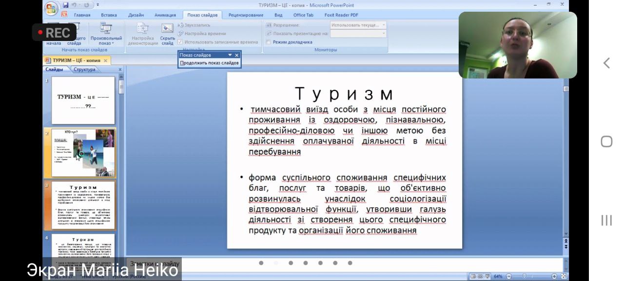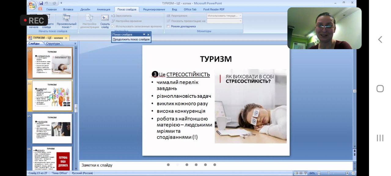Викладачі та студенти кафедри відвідали онлайн-лекцію професора Одеського національного морського університету Балджи Марини Дмитрівни на тему “Зміст, характер та сфера майбутньої діяльності випускників спеціальностей 241 “Готельно-ресторанна справа” та 242 “Туризм”