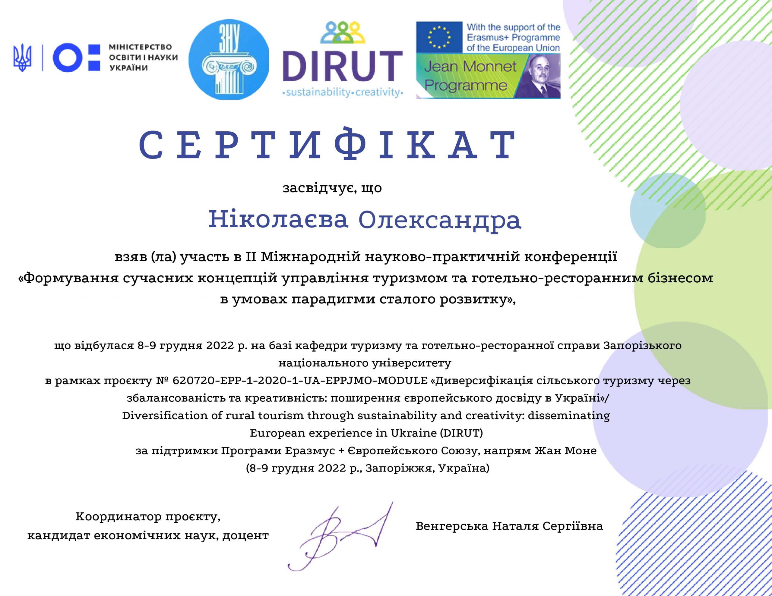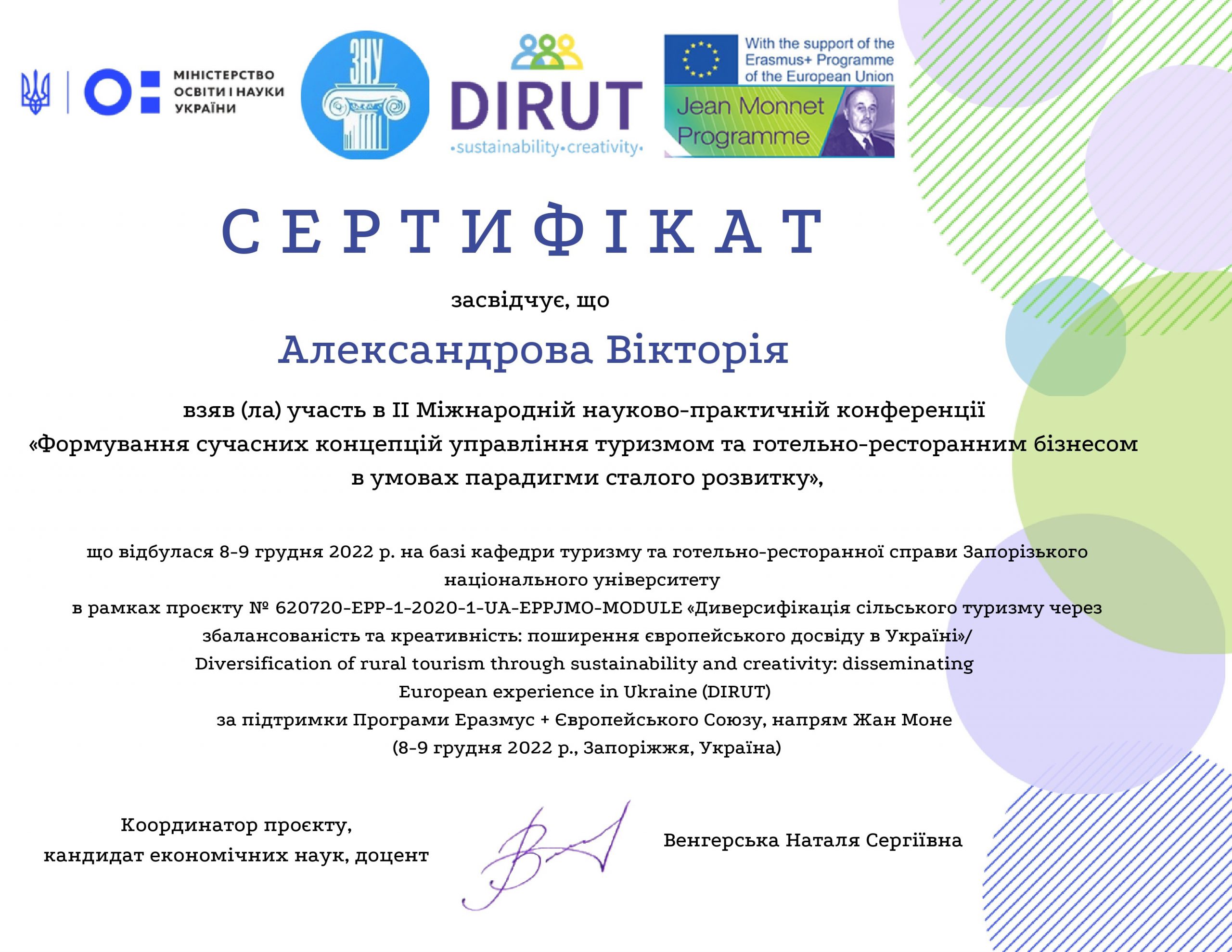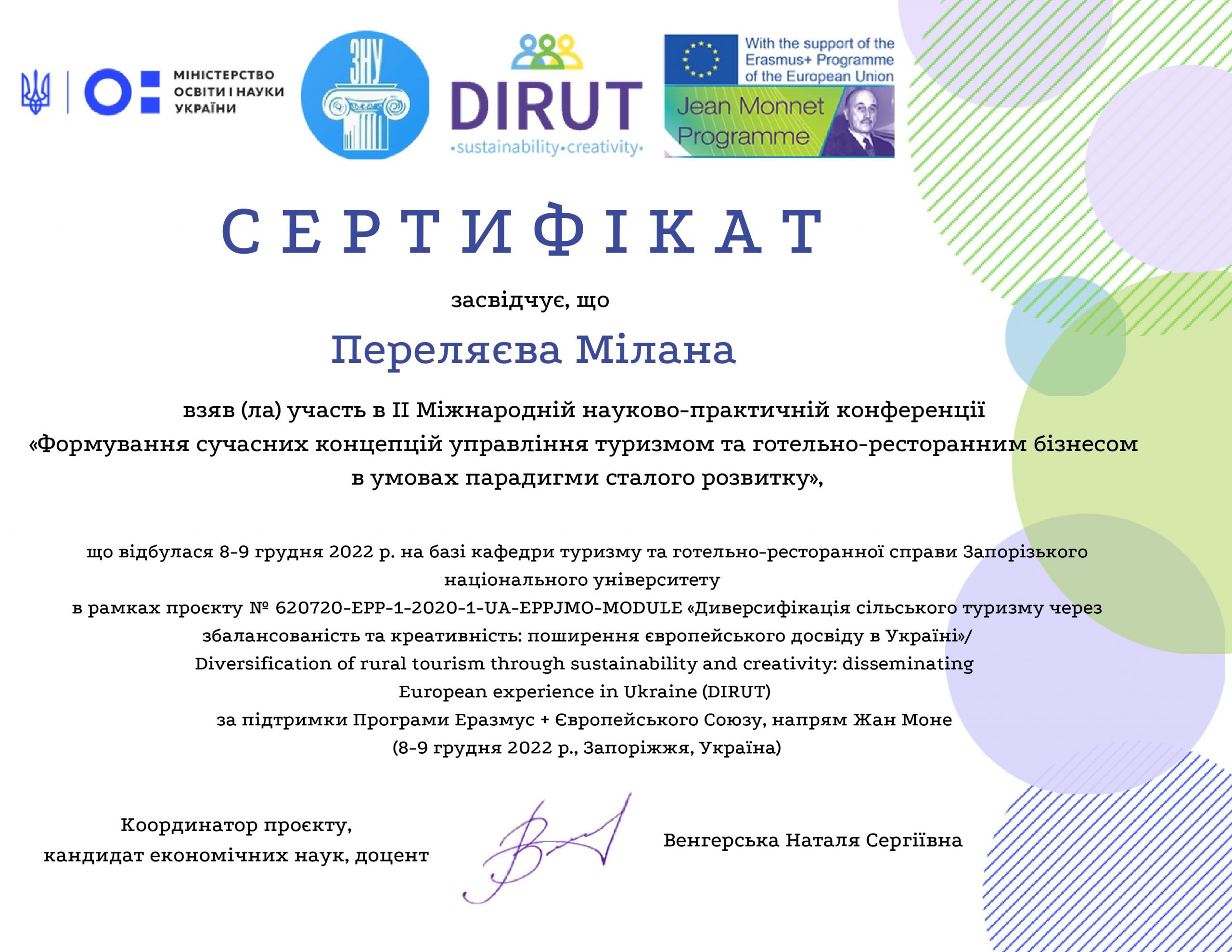 МІЖНАРОДНА МОБІЛЬНІСТЬ СТУДЕНТКИ ОП ТУРИСТИЧНИЙ БІЗНЕС КАТЕРИНИ ТРЕТЯКОВОЇ