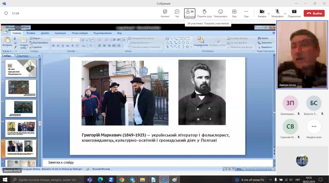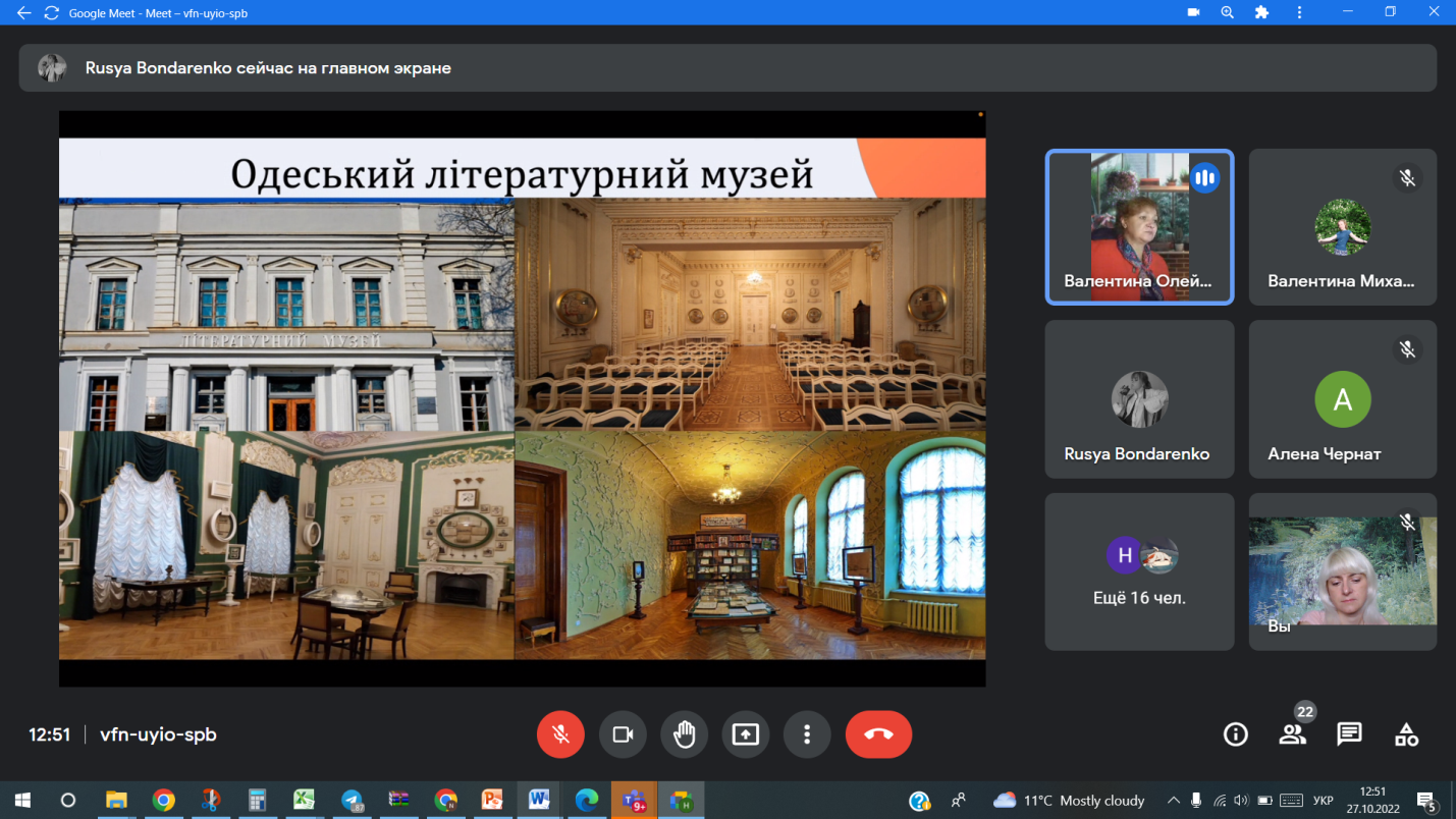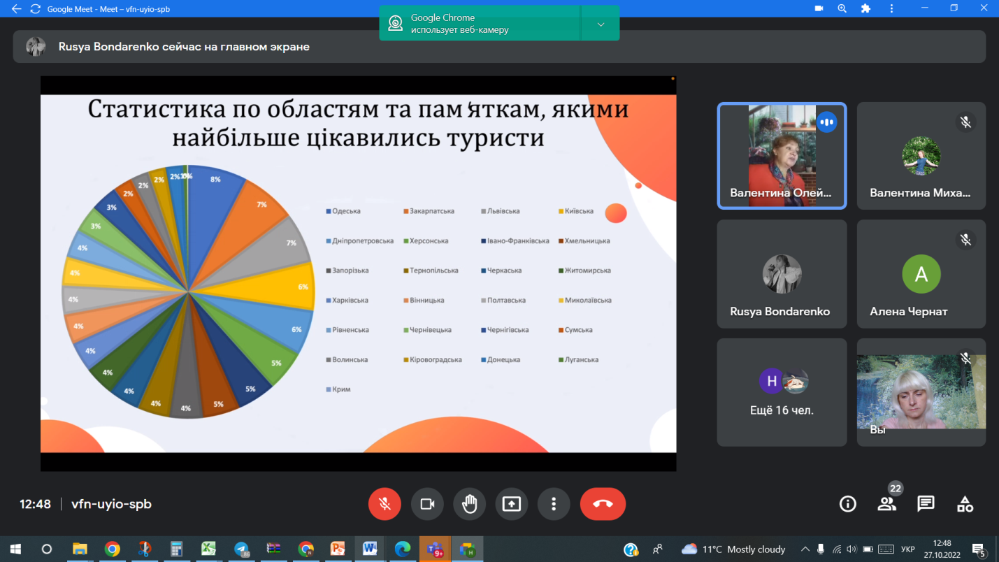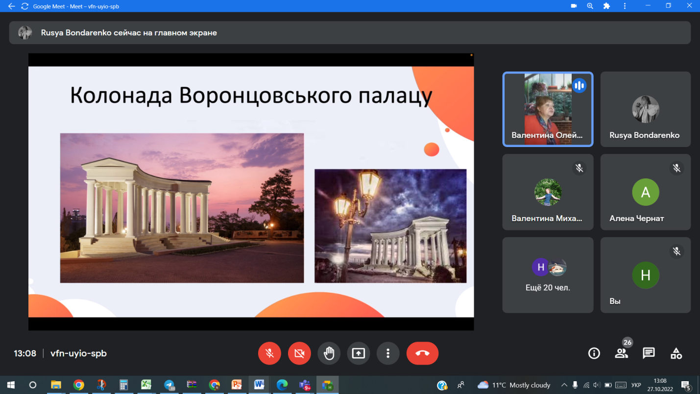 Викладачі та студенти кафедри відвідали онлайн-лекцію “Одеса туристична” доцента кафедри підприємництва та туризму Одеського національного морського університету Олійник Валентини Дем’янівни