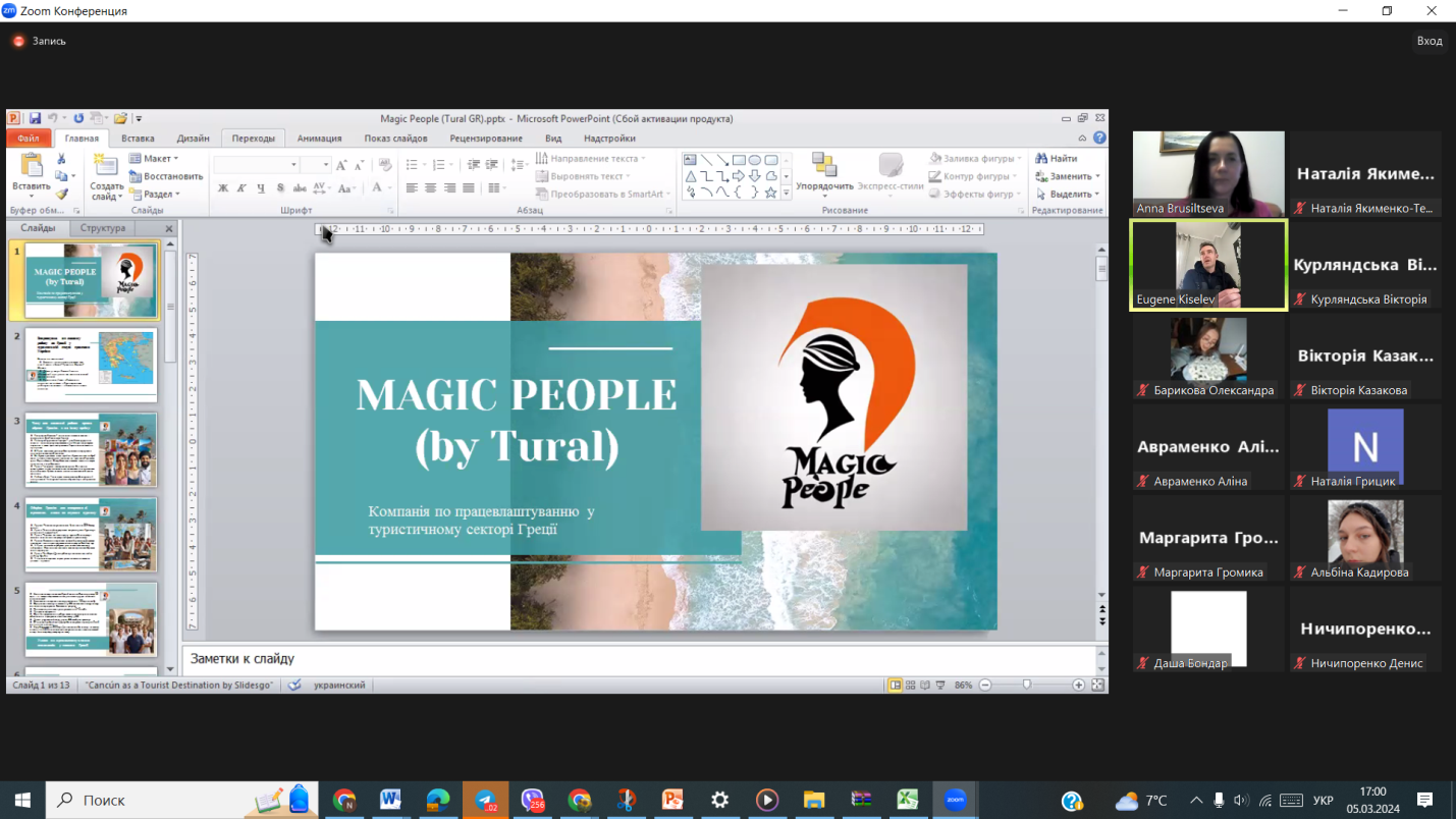 11 жовтня 2022 р. для студентів кафедри туризму і готельно-ресторанного бізнесу було проведено онлайн-тренінг «Кар’єра у туристичному і готельному бізнесі: секрети успіху», який проводився запрошеною спікеркою Маргаритою Родич – практикуючим фахівцем, старшим адміністратором готелю Armas Labada (Кемер, Туреччина).