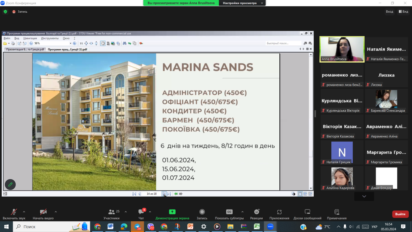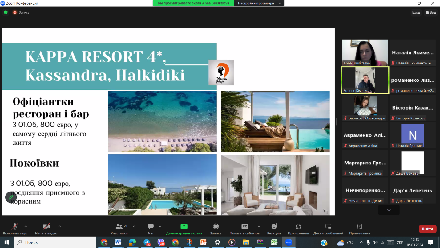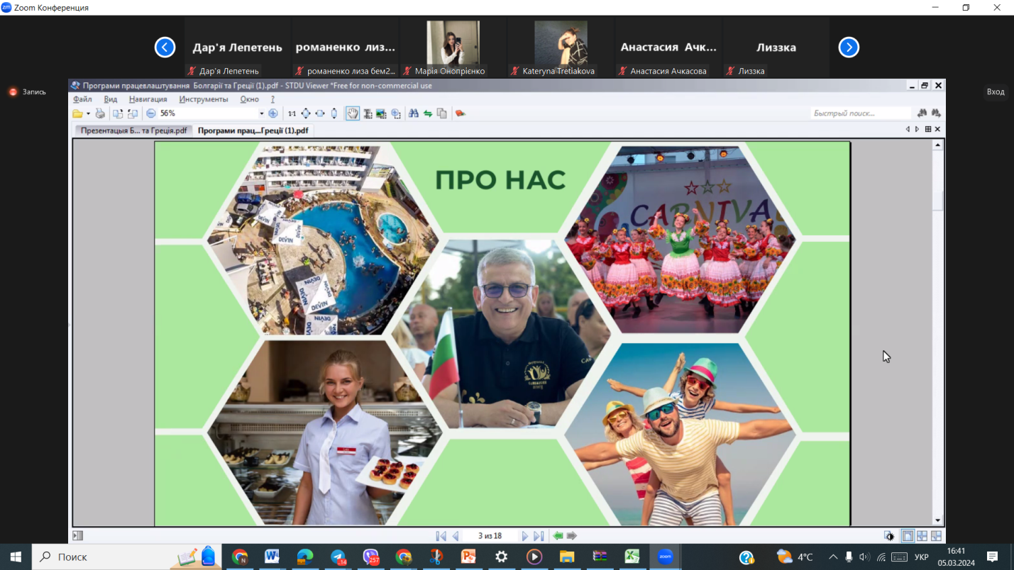 Презентація можливості участі у програмі молодіжного проєкту «Робота мрії» з працевлаштування у галузі гостинності за кордоном (Туреччина, Єгипет, Кіпр) на період травень-жовтень 2023 року