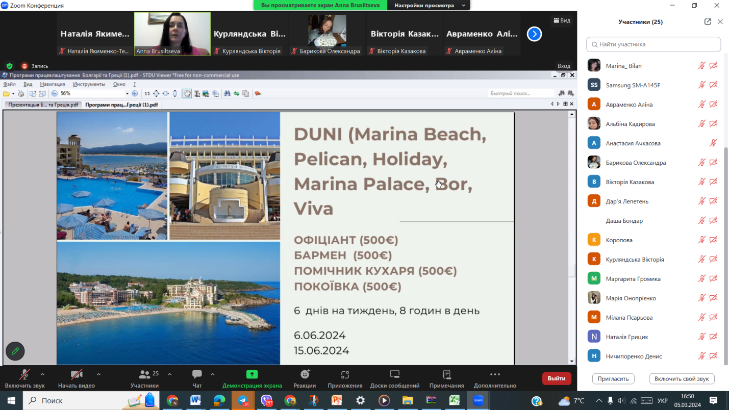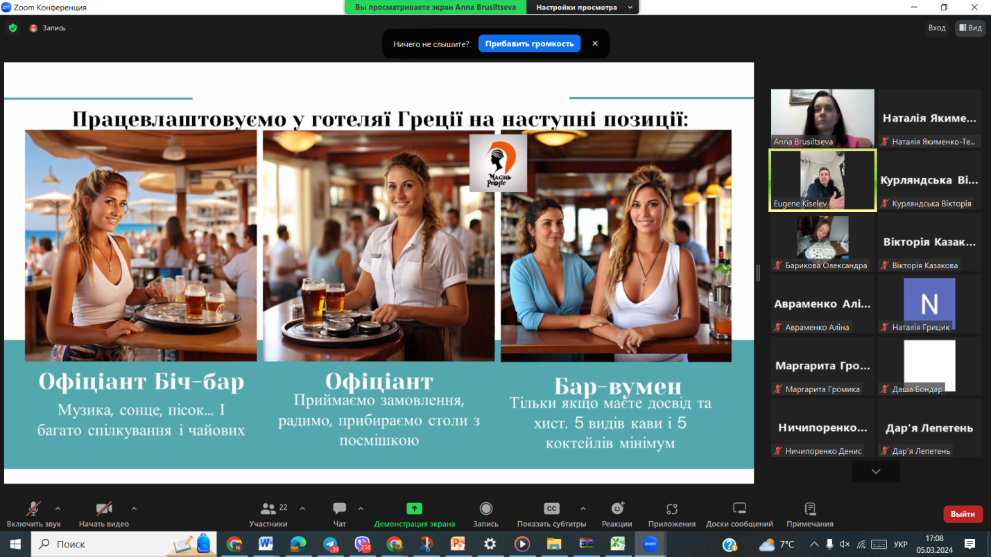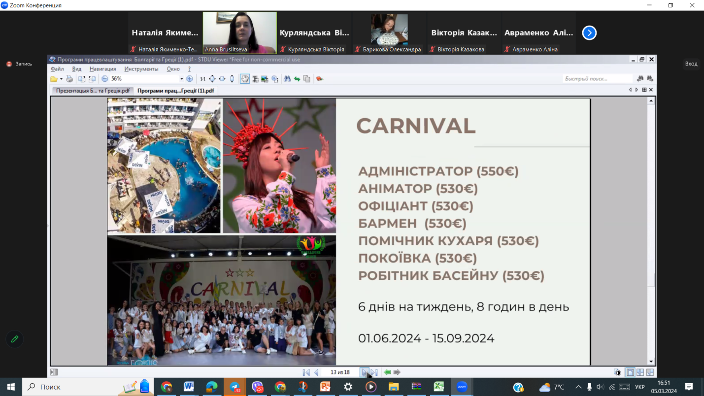 Презентація можливості участі у програмі молодіжного проєкту «Робота мрії» з працевлаштування у галузі гостинності за кордоном (Туреччина, Єгипет, Кіпр) на період травень-жовтень 2023 року