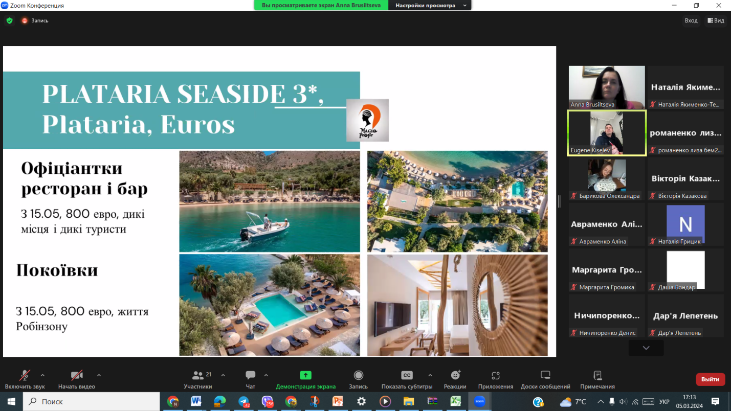 Відбувся онлайн-тренінг із представником компанії Armas Hotels (Туреччина) Маргаритою Родич