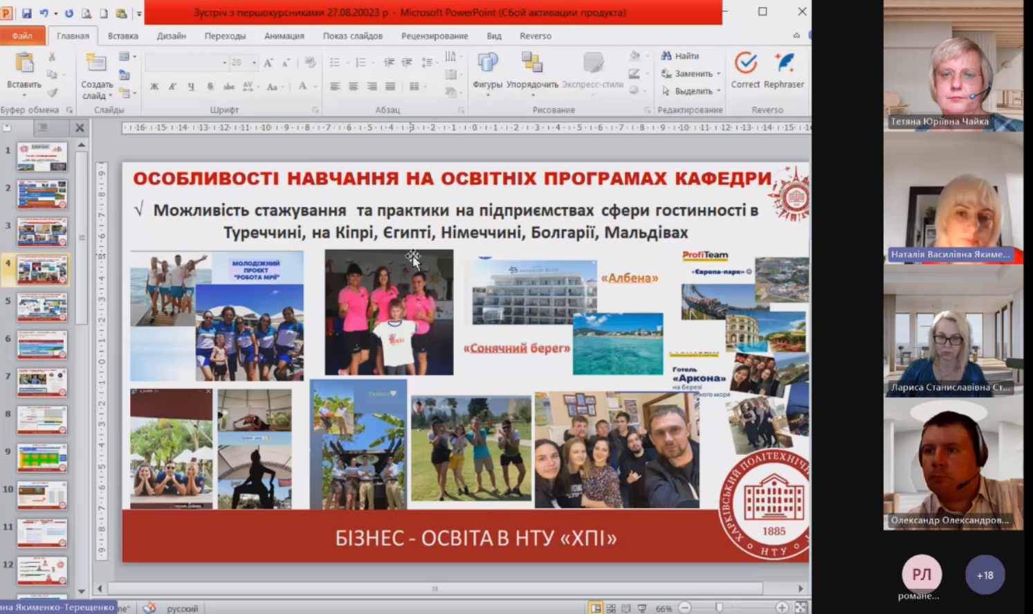 07 жовтня 2022 р. студенти та викладачі кафедри туризму і готельно-ресторанного бізнесу відвідали онлайн-тренінг за програмою «Активні громадяни» із Сергієм Толстіхіним – експертом з розвитку туризму. Захід було організовано за підтримки заступника директора ННІ ЕММБ Наталії Волоснікової, також на заході були присутні викладачі та студенти НТУ «ХПІ» та інших ЗВО України.