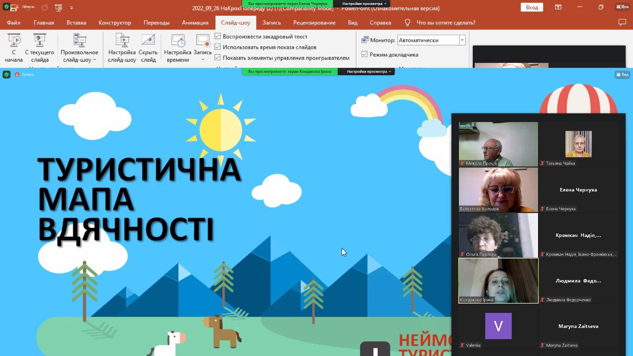 Висловлюємо щиру подяку усім присутнім на заході та особисто директорові КОЗ “Харківський організаційно-методичний центр туризму” Валентині Дмитрівні Холодок за організацію та запрошення на потрібний та цікавий онлайн-марафон!