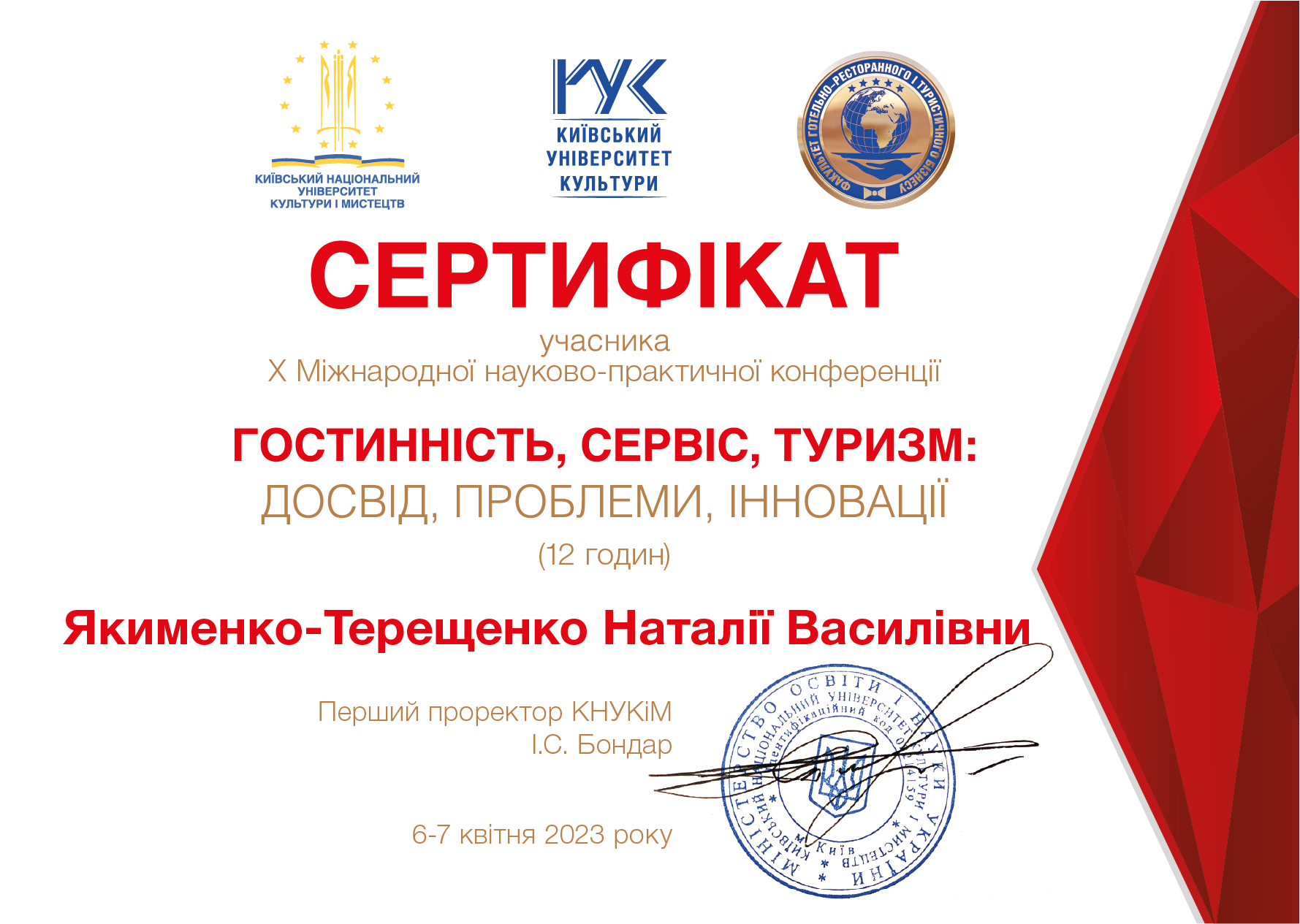 Попри складну ситуацію в Україні, пов’язаною з війною, конференція стала активним майданчиком партнерської співпраці, обміну думками, науковими напрацюваннями у сфері маркетингових, соціально-економічних векторів розвитку сфер гостинності та туризму. Слід зазначити, що конференція продемонструвала стійкість та відданість українських науковців продовжувати дослідження та розробку інноваційних рішень задля скорішого відновлення нашої держави.