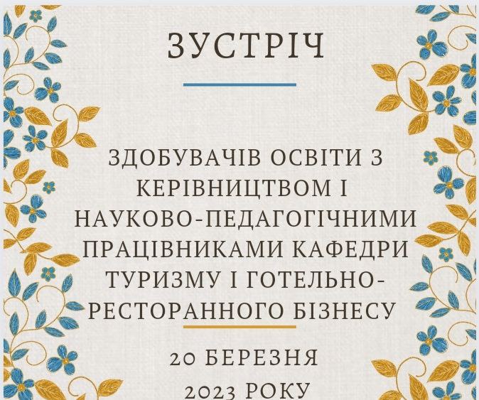 Усі відеоматеріали зустрічі можна буде переглянути на Youtube-каналі кафедри туризму і готельно-ресторанного бізнесу.