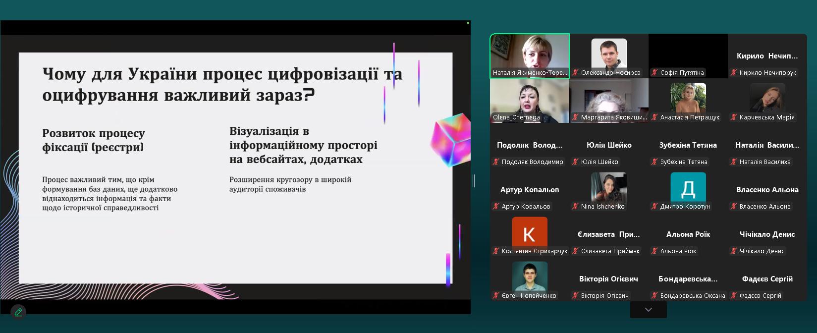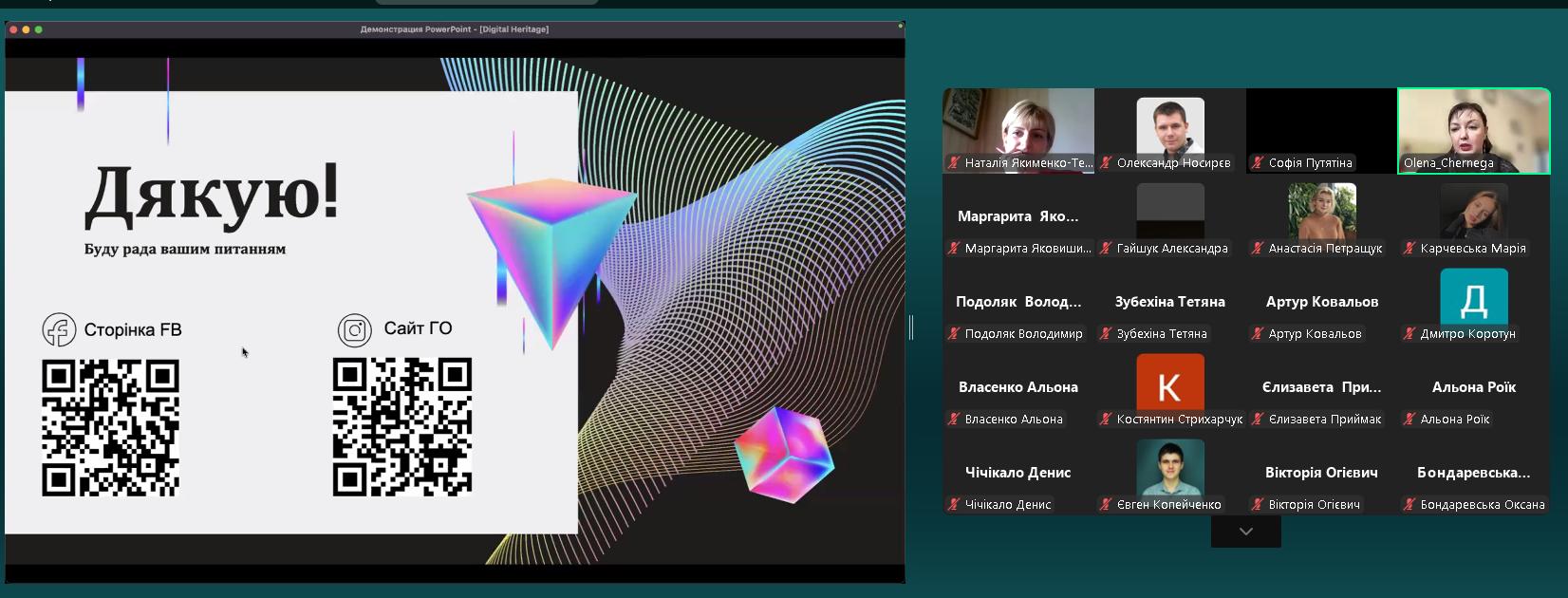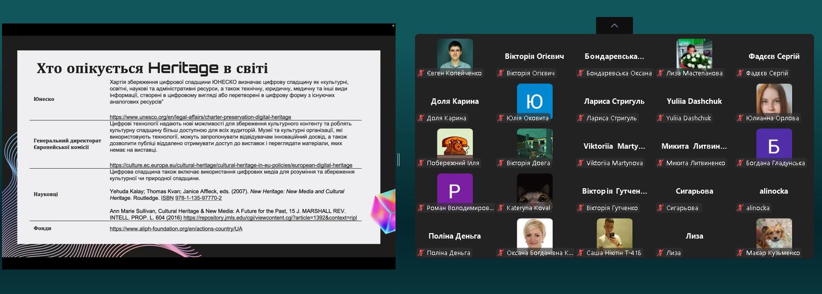 Матеріал, презентований спікеркою, був цікавим, насиченим конкретними статистичними даними, та містив світові кейси оцифрування спадщини, зокрема у форматі віртуального туру.
