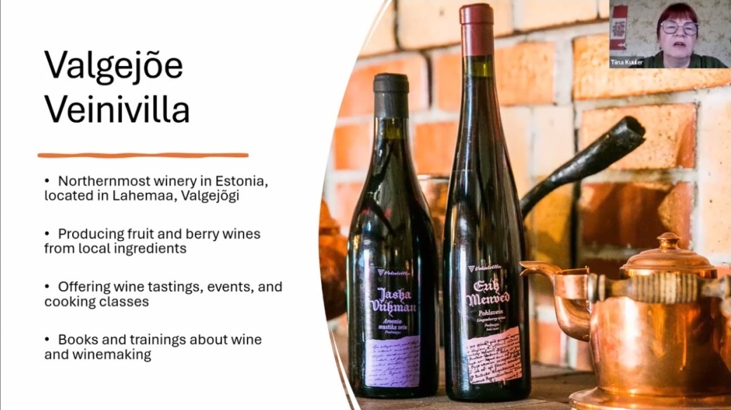 Valgejõe Winery (Естонія) – Тііни Кулер – естонської виноробки, підприємниці, яка керує виноробнею Valgejõe Veinivilla, найпівнічнішою у Естонії, де створює фруктові та ягідні вина з місцевої сировини. Вона також займається навчанням, проводить дегустації, екскурсії та культурні події, авторка кількох книг, зокрема «Our Wines» і «Guide and Our Wines».
