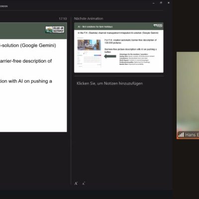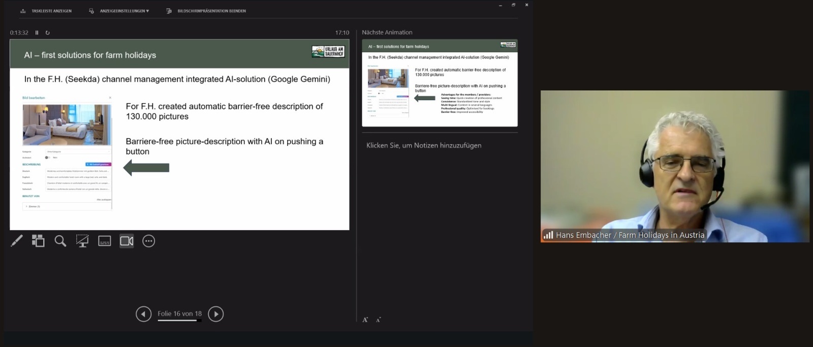 Під його керівництвом мережа Farm Holidays in Austria стала моделлю якості, сталості та інновацій із понад 2000 фермерськими господарствами-членами. Ганс поділився досвідом, як ця асоціація використовує ШІ для управління якістю, маркетингу та підтримки своїх членів.