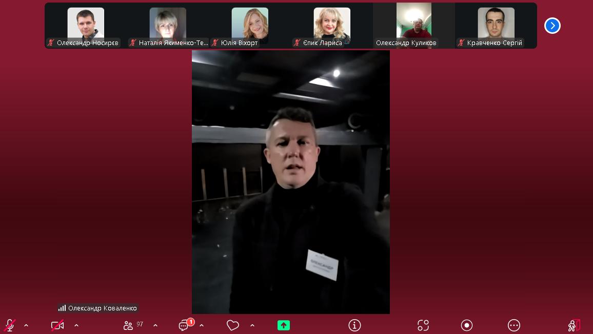 Пан Олександр провів тренінг у повністю реалістичних умовах в приміщенні Національного академічного театру драми та музичної комедії ім. М.С.Щепкіна – величезної будівлі, де комплексно розповів про театральну діяльність, організацію вистав, а його завчасно спланований маршрут жодного разу не повторився, й усі присутні разом з ним рухались весь час новими локаціями цієї подорожі.