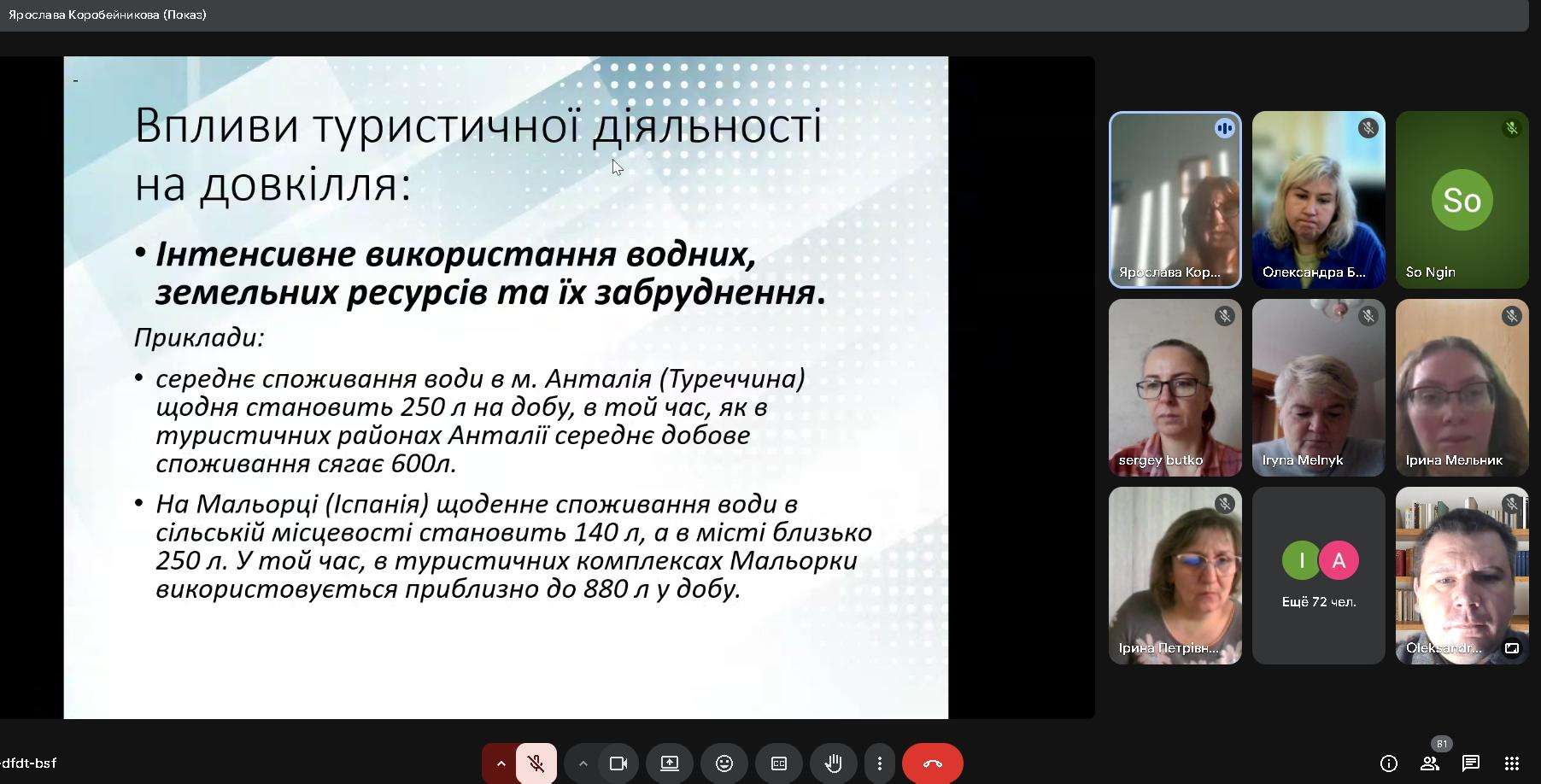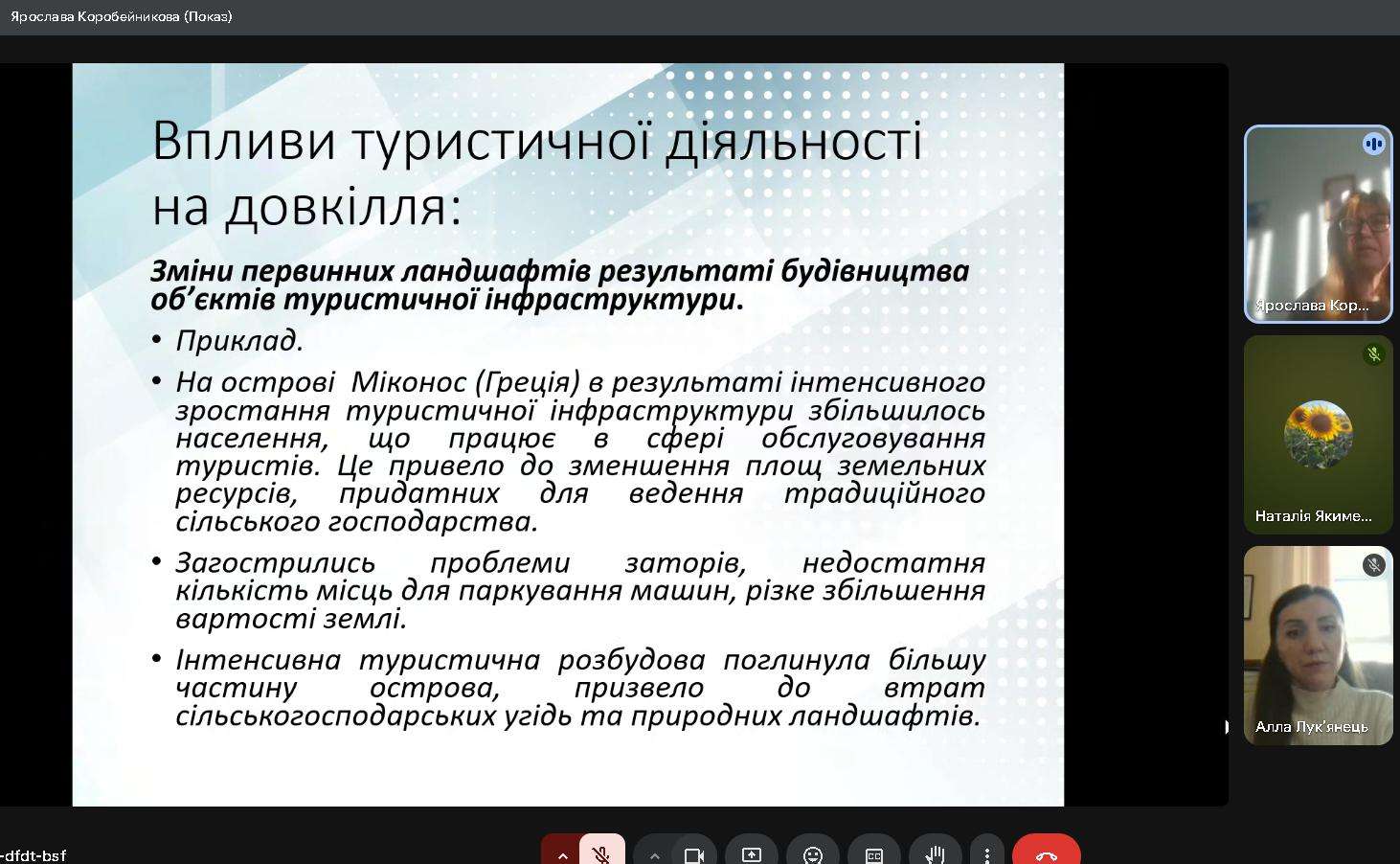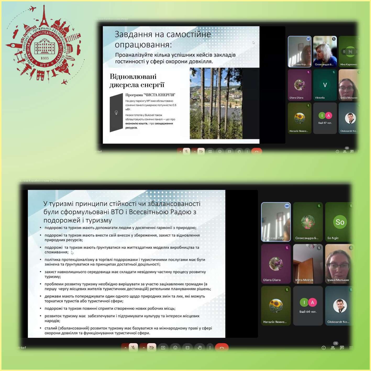 Під час лекції здобувачі освіти розглянули низку важливих питань, пов’язаних із впливом екологічних факторів на туризм 🌤, проблемою овертуризму 🏙, екологічною безпекою дестинацій 🌿, плануванням рекреаційних зон і правовим режимом курортів 🏖, а також особливостями туристичної діяльності на природно-заповідних територіях 🏞.