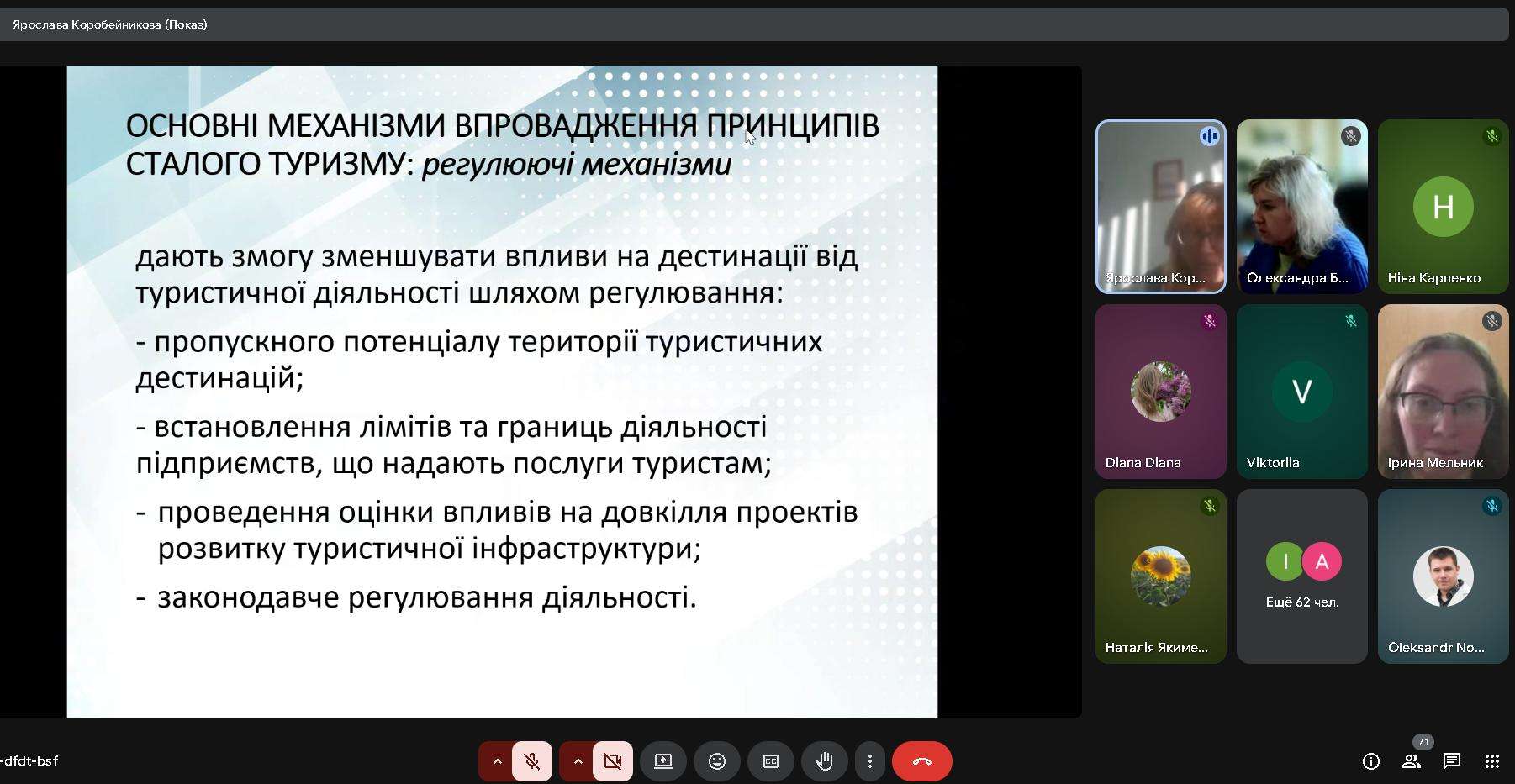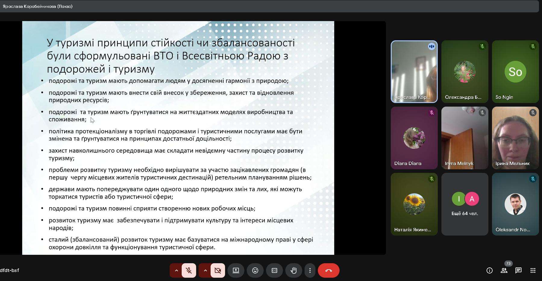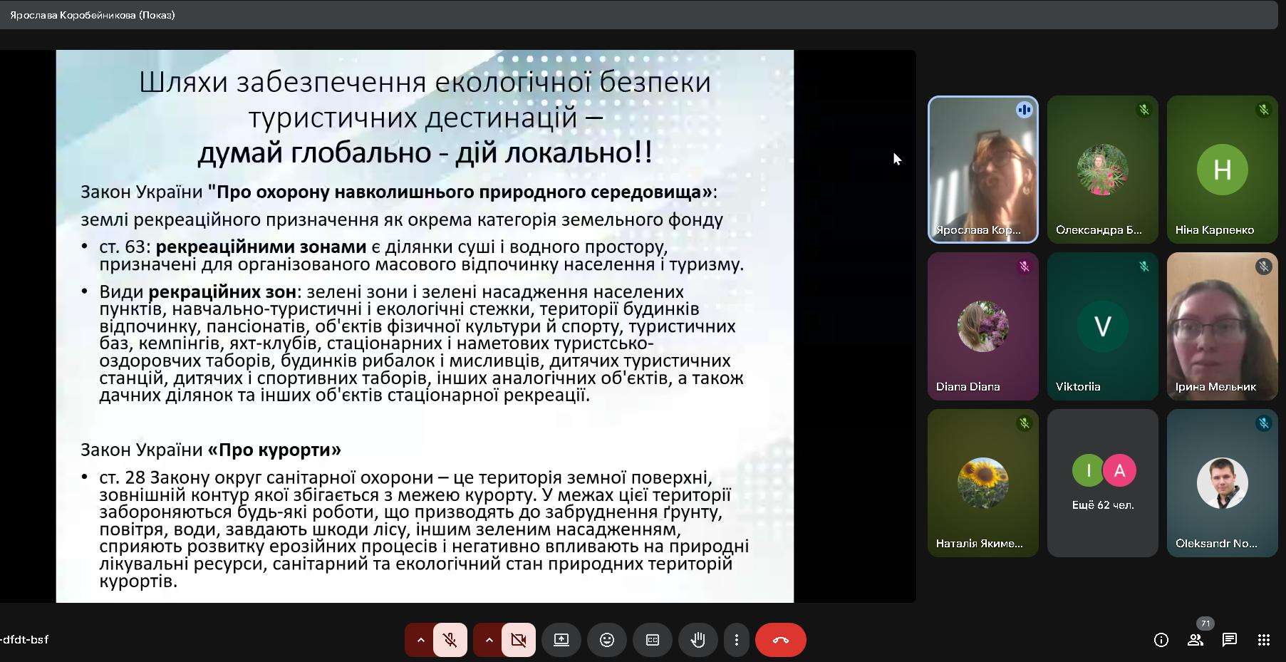 Під час лекції здобувачі освіти розглянули низку важливих питань, пов’язаних із впливом екологічних факторів на туризм 🌤, проблемою овертуризму 🏙, екологічною безпекою дестинацій 🌿, плануванням рекреаційних зон і правовим режимом курортів 🏖, а також особливостями туристичної діяльності на природно-заповідних територіях 🏞.