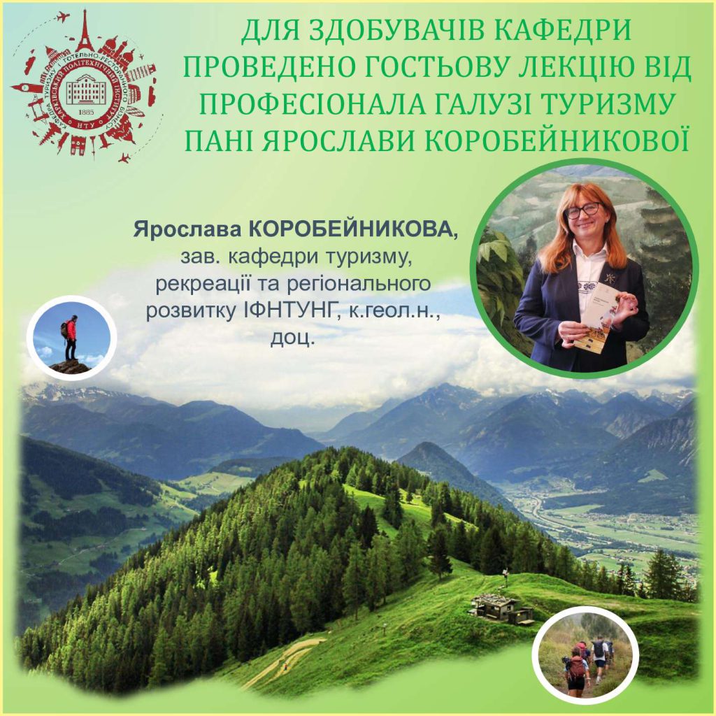 👩🏫 Спікеркою лекції була КОРОБЕЙНИКОВА Ярослава Степанівна – завідувачка кафедри туризму, рекреації та регіонального розвитку Івано-Франківського національного технічного університету нафти і газу, кандидатка геологічних наук, доцентка 🌿