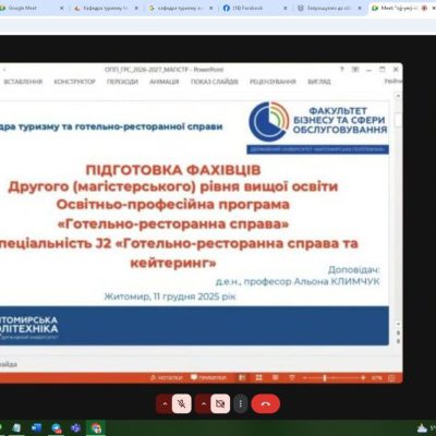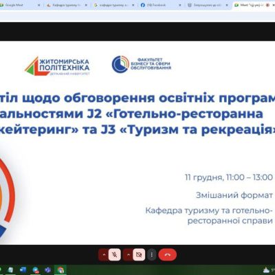 11 грудня 2025 року представники кафедри долучились до участі у круглому столі з обговорення освітніх програм за спеціальностями J2 «Готельно-ресторанна справа та кейтеринг» та J3 «Туризм та рекреація», який було організовано кафедрою туризму та готельно-ресторанної справи Державного університету «Житомирська політехніка». 🤝🏫