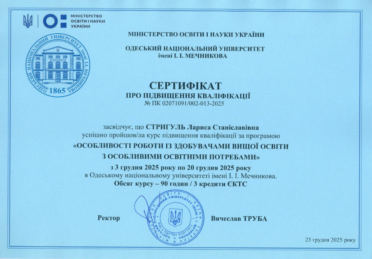 СТРИГУЛЬ ЛАРИСА СТАНІСЛАВІВНА