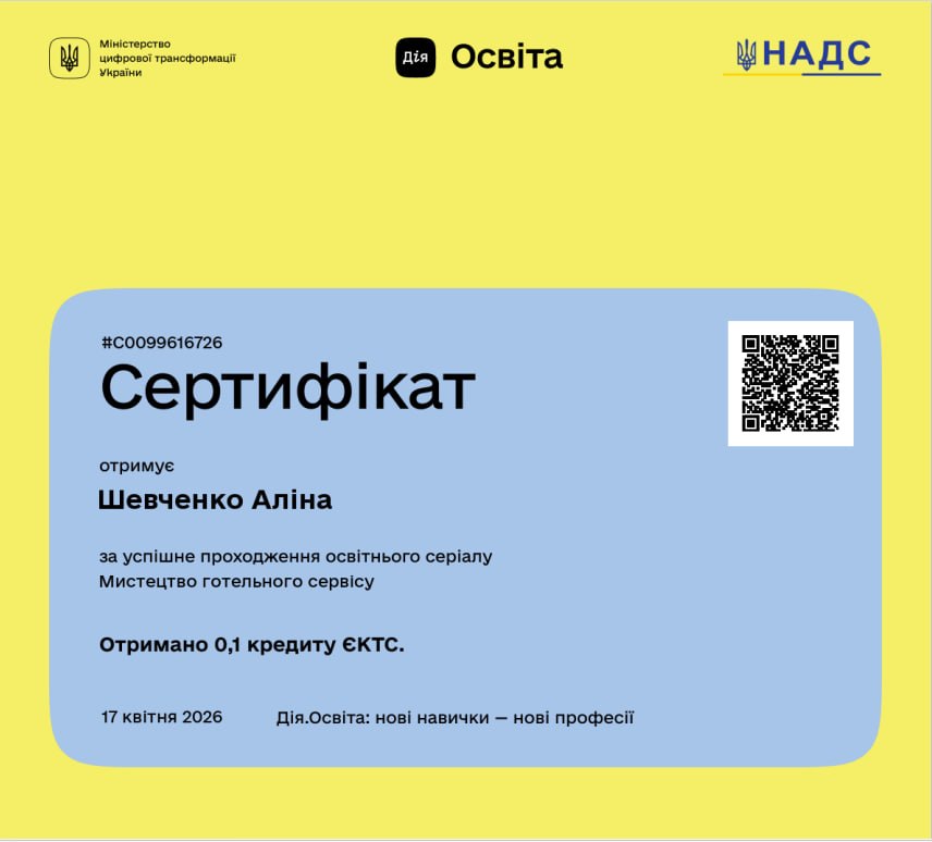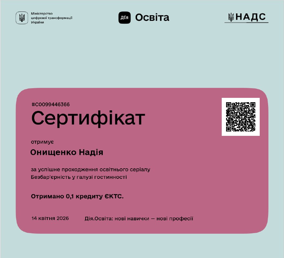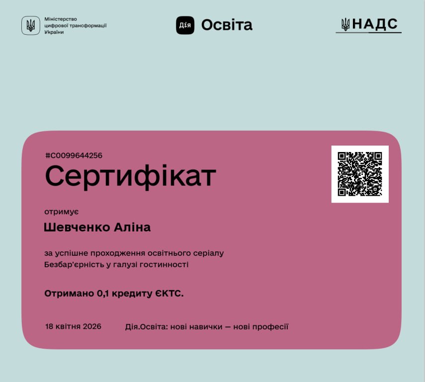у «Всеукраїнській школі гостинності Ribas»