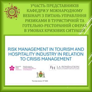 УЧАСТЬ ПРЕДСТАВНИКІВ КАФЕДРИ У МІЖНАРОДНОМУ ВЕБІНАРІ З ПИТАНЬ УПРАВЛІННЯ РИЗИКАМИ В ТУРИСТИЧНІЙ ТА ГОТЕЛЬНО-РЕСТОРАННІЙ СФЕРАХ В УМОВАХ КРИЗОВИХ СИТУАЦІЙ
