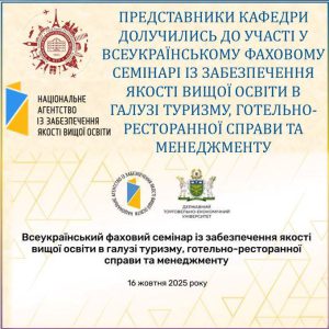ПРЕДСТАВНИКИ КАФЕДРИ ДОЛУЧИЛИСЯ ДО ВСЕУКРАЇНСЬКОГО ФАХОВОГО СЕМІНАРУ ІЗ ЗАБЕЗПЕЧЕННЯ ЯКОСТІ ВИЩОЇ ОСВІТИ У ГАЛУЗІ ТУРИЗМУ ТА ГОТЕЛЬНО-РЕСТОРАННОЇ СПРАВИ 🎓🌍
