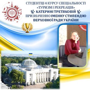 СТУДЕНТЦІ 4 КУРСУ СПЕЦІАЛЬНОСТІ «ТУРИЗМ І РЕКРЕАЦІЯ» ✨ КАТЕРИНІ ТРЕТЯКОВІЙ ПРИЗНАЧЕННО ІМЕННУ СТИПЕНДІЮ ВЕРХОВНОЇ РАДИ УКРАЇНИ ✨