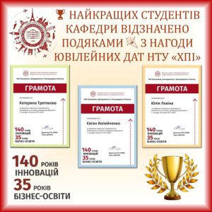 🏆 Найкращих студентів кафедри відзначено грамотами з нагоди ювілейних дат НТУ «ХПІ»
