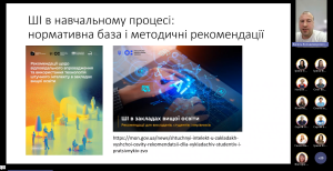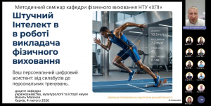 4 лютого 2026 року доцент кафедри українознавства, культурології та історії науки Василь Маліков провів методичний семінар «Застосування штучного інтелекту в навчальному процесі» на кафедрі фізичного виховання НТУ «ХПІ». На семінарі були представлені чинні нормативні акти та методичні рекомендації щодо використання штучного інтелекту у викладанні і навчанні у вищій школі. Після презентації можливостей застосування штучного інтелекту викладачі кафедри перейшли до жвавої дискусії та обміну досвідом застосування ШІ у своїй роботі зі студентами в університеті. Ознайомитися зі змістом семінару можна у записі, доступному за посиланням: https://youtu.be/UQrukNj81D8