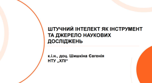 У межах цієї неординарної події доцентки кафедри українознавства, культурології та історії науки канд. іст. наук Євгенія Шишкіна та канд. іст. наук Світлана Тєлуха провели заняття “Штучний інтелект як інструмент і джерело наукових досліджень”. Презентація цього майстер-класу доступна за посиланням.