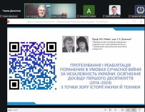 The preparation and work of the congress involved, in particular, a member of its organising committee, Vice-President of the Ukrainian Academy of Medical History, Professor of the Department Ihor Robak, and academician of the UAMH, associate professor of UKIN, director of the Centre for Medical Local History named after Prof. V. D. Otamanovsky Centre for Medical Local History. They presented a joint report entitled ‘Prosthetics and Rehabilitation of the Wounded in the Context of the Modern War for Ukraine’s Independence: Understanding the Experience of the First Decade (2014–2024) from the Perspective of the History of Science and Technology.’ The full text of the report, which was published as an article in the Eastern European Journal of Internal and Family Medicine, can be found by scanning the QR code on the slide.