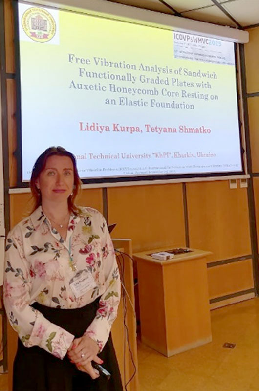 Професорка кафедри Вищої математики Тетяна Валентинівна Шматко стала учасницею єдиної української групи, яка брала участь у 16-й Міжнародній конференції з проблем вібрації (ICOVP-2025) та 11-й Міжнародній конференції з хвильової механіки та коливань (WMVC-2025), що проходили разом в Лісабоні, Португалії, з 2 по 5 вересня 2025 року.